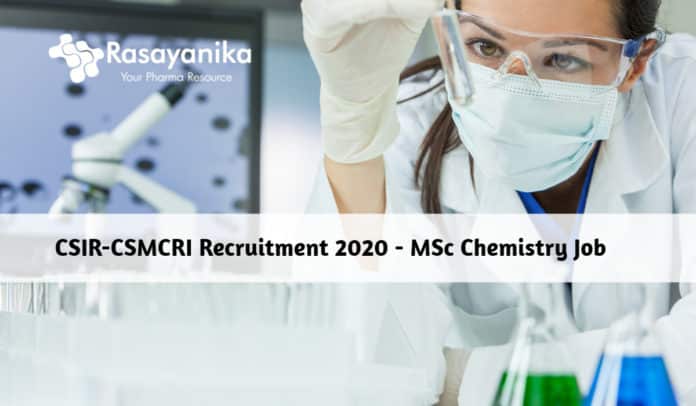 Editor’s Note: CSIR-CSMCRI Recruitment 2020 Subscribe to Rasayanika for latest chemistry and Pharma job openings, follow us on Facebook and Whatsapp and subscribe to our youtube channel for latest updates on chemistry and Pharma jobs and much more.