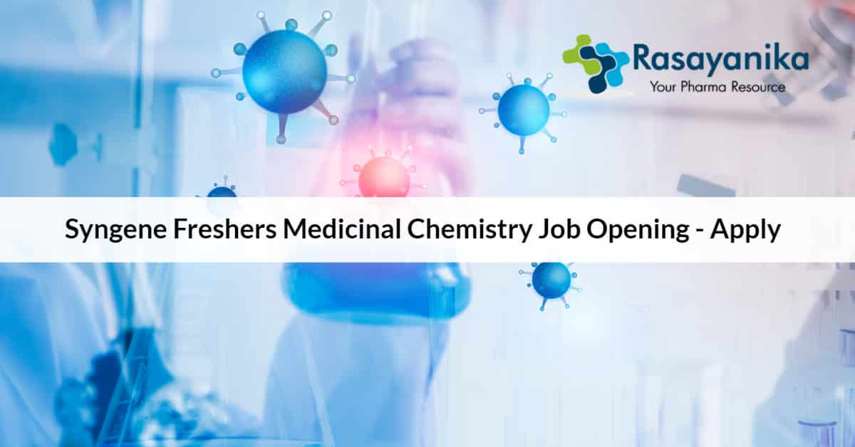 Editor’s Note: Syngene Freshers Medicinal Chemistry Subscribe to Rasayanika for latest chemistry and Pharma job openings, follow us on Facebook and Whatsapp and subscribe to our youtube channel for latest updates on chemistry and Pharma jobs and much more.