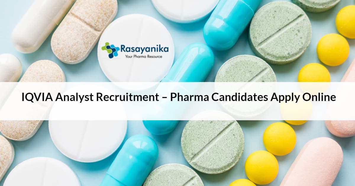 Editors Note: IQVIA Analyst Recruitment Subscribe to Rasayanika for latest chemistry and Pharma job openings, follow us on Facebook and Whatsapp and subscribe to our youtube channel for latest updates on chemistry and Pharma jobs and much more.