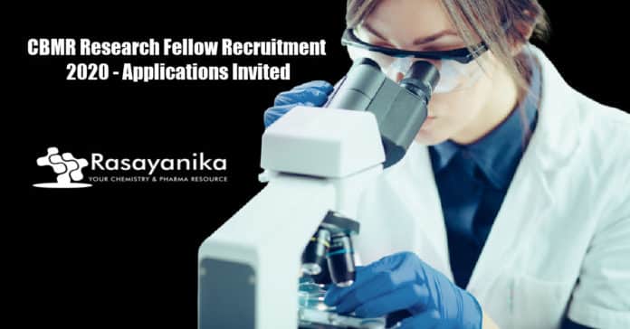 Editors Note: CBMR Research Fellow Recruitment Subscribe to Rasayanika for latest chemistry and Pharma job openings, follow us on Facebook and Whatsapp and subscribe to our youtube channel for latest updates on chemistry and Pharma jobs and much more.