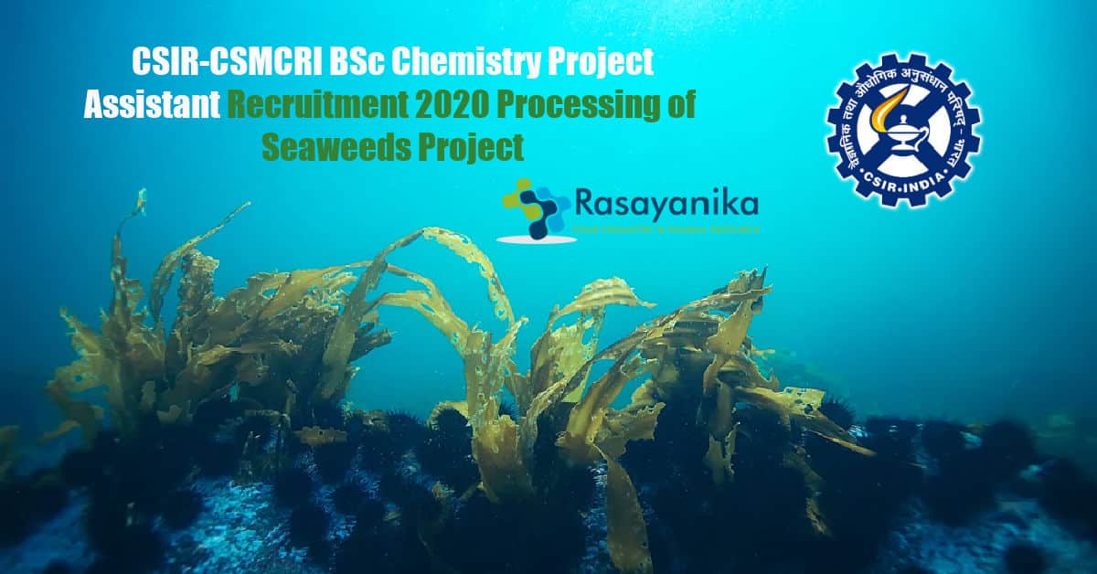 Editors Note: CSIR-CSMCRI BSc Chemistry Subscribe to Rasayanika for latest chemistry and Pharma job openings, follow us on Facebook and Whatsapp and subscribe to our youtube channel for latest updates on chemistry and Pharma jobs and much more.