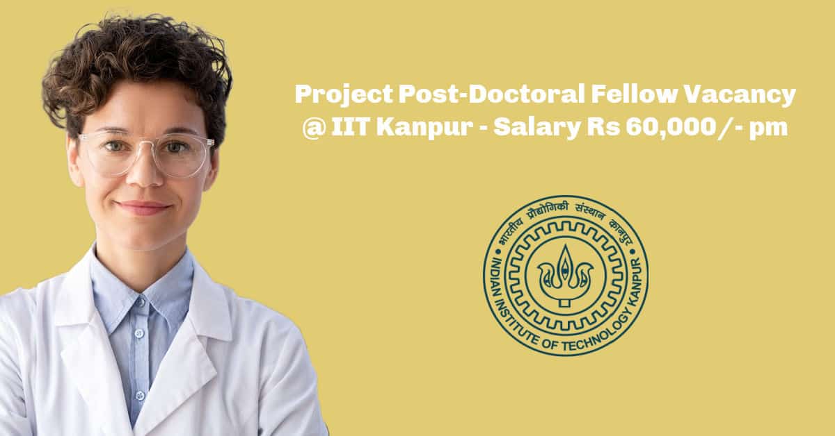 Project Post-Doctoral Fellow @ IIT Kanpur – Salary Rs 60,000/- pm