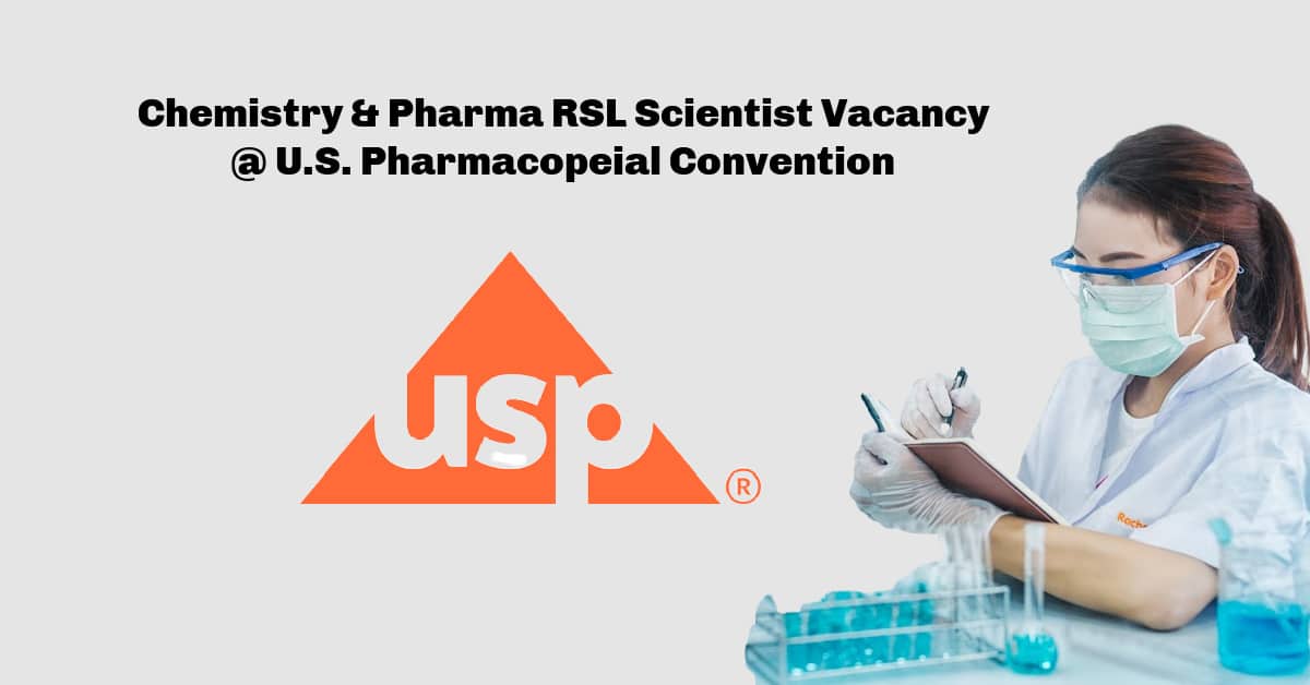 U.S. Pharmacopeial Convention (USP) is hiring postgraduate chemistry and pharma candidates for the post of Scientist I, RSL for Hyderabad, India location. Scientist job opening 2022, Chemistry and Pharma job opening at USP. Chemistry job opening 2022, Pharma job opening 2022. Intrested and eligible candidates may check out all the details on the same below:
