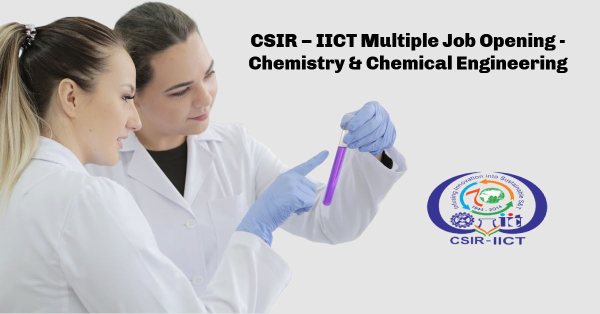 CSIR – IICT announces walk in inteview for multiple posts. Chemistry candidates invited for multiple post vacancy at CSIR IICT. Chemical engineering job opening 2022. Chemistry job opening 2022, Chemistry job vacancy 2022. MSc Chemistry job opening 2022. Intresred and eligible candidates may check out all the details on the same below: