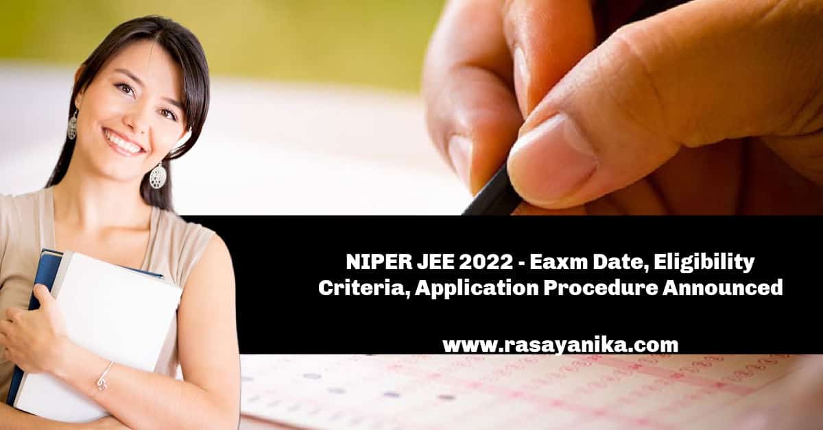 Editors Note: NIPER JEE 2022 Subscribe to Rasayanika for the latest chemistry and Pharma job openings, follow us on Facebook and Telegram and subscribe to our youtube channel for the latest updates on chemistry and Pharma jobs and much more.