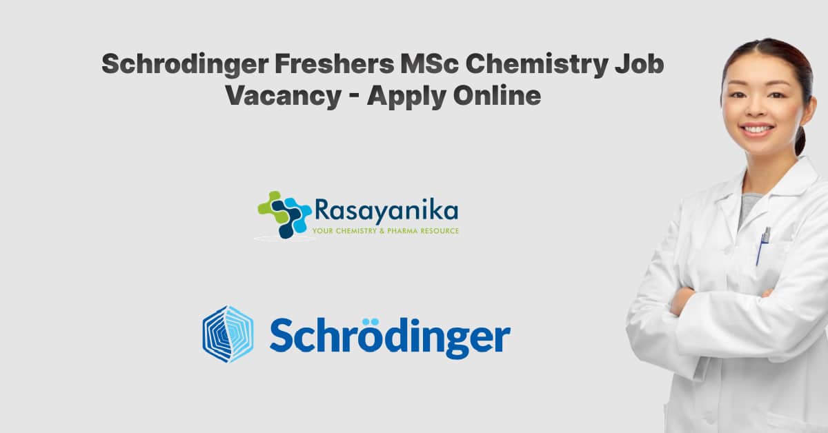 Editors Note: Schrodinger Freshers MSc Chemistry Subscribe to Rasayanika for the latest chemistry and Pharma job openings, follow us on Facebook and Telegram and subscribe to our youtube channel for the latest updates on chemistry and Pharma jobs and much more.