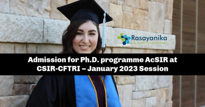 Admission for PhD programme AcSIR at CSIR-CFTRI – January 2023 Session