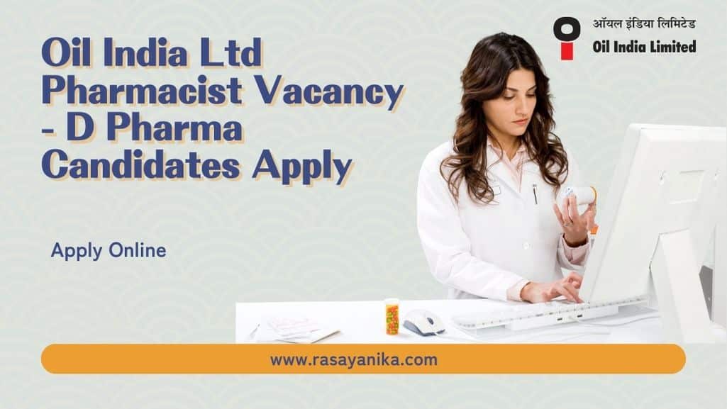 Editors Note: Oil India Ltd, Oil India Ltd Pharmacist Oil India Ltd Pharmacist Subscribe to Rasayanika for the latest chemistry and Pharma job openings, follow us on Facebook and Telegram and subscribe to our youtube channel for the latest updates on chemistry and Pharma jobs and much more.