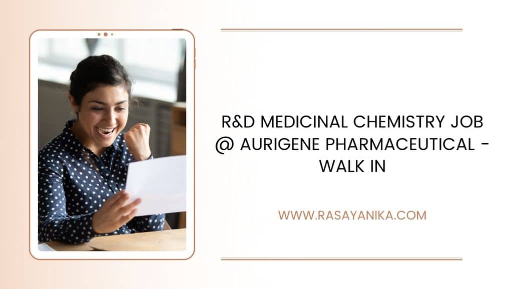 Editors Note: R&D Medicinal Chemistry Job Subscribe to Rasayanika for the latest chemistry and Pharma job openings, follow us on Facebook and Telegram and subscribe to our youtube