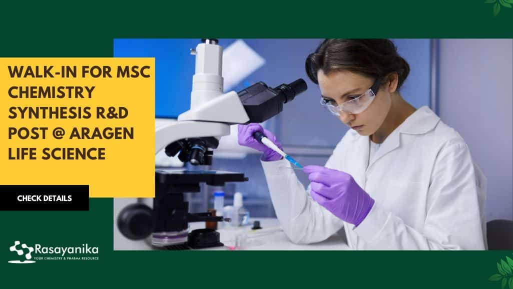 MSc Walk-In for MSc Looking for latest chemistry and Pharma job openings, follow Rasayanika Facebook and Telegram and subscribe to our youtube channel for the latest updates on chemistry and Pharma job