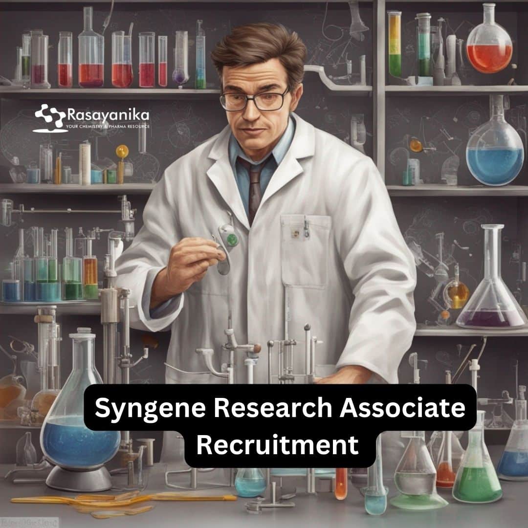 Syngene Research Associate Recruitment Looking for latest chemistry and Pharma job openings, follow Rasayanika Facebook and Telegram and subscribe to our youtube channel for the latest updates on chemistry and Pharma job.