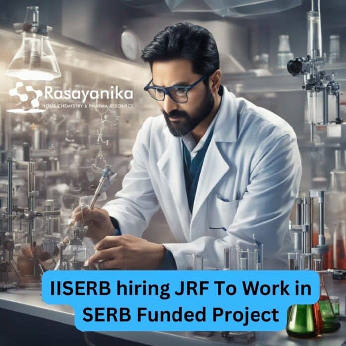 IISERB hiring JRF Looking for latest chemistry and Pharma job openings, follow Rasayanika Facebook and Telegram and subscribe to our youtube channel for the latest updates on chemistry and Pharma job.