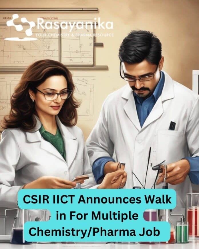Multiple Chemistry/Pharma job opening 2023, CSIR – IICT is conducting Walk-in-Interview on 06.09.2023 for the following positions under various sponsored projects purely on temporary basis
