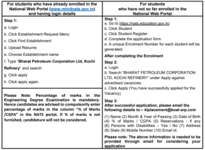 Last date for enrolling in NATS portal in order to apply to “Bharat Petroleum Corporation Ltd, Kochi Refinery ” 15.09.2023