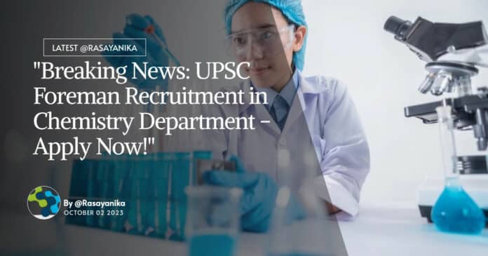 Keywords: UPSC, Chem Engg, Chemistry, Recruitment, Foreman, Chemical, Defence, Aeronautical Quality Assurance. UPSC Chem Engg & Chemistry Recruitment. Subscribe to Rasayanika for the latest chemistry and Pharma job openings, follow us on Facebook and Telegram and subscribe to our youtube channel for the latest updates on chemistry and Pharma jobs and much more.
