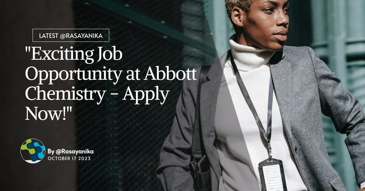 Keywords: Abbott, Chemistry QA, Executive Recruitment, Apply Now, Quality Assurance, Jhagadia, India, Job Posting. Abbott Chemistry QA Executive Recruitment – Apply Now! Subscribe to Rasayanika for the latest chemistry and Pharma job openings, follow us on Facebook and Telegram and subscribe to our youtube channel for the latest updates on chemistry and Pharma jobs and much more.