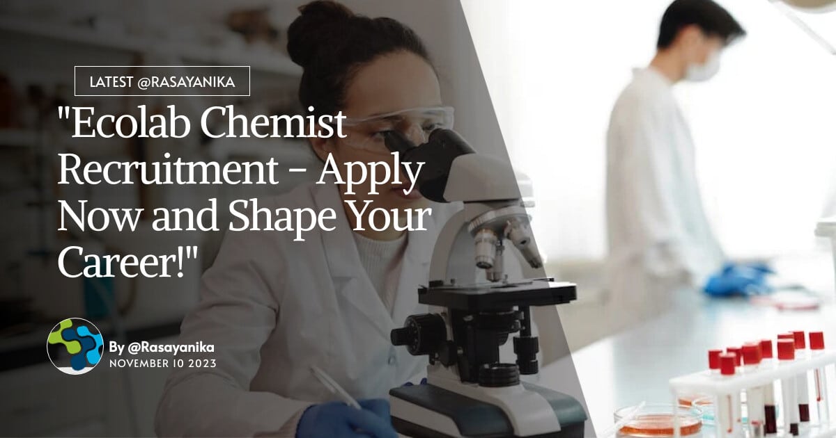 Keywords: Ecolab Chemist Recruitment, Apply Online, Job ID R00044498, Research, Development, & Engineering, Pune, Maharashtra, Principal Chemist, Technical Platforms, Business Needs, Customer Needs, Research and Development, Problem Solving, New Product Development, Anchor and Divisional RDE Teams, Collaboration, Teamwork Skills, Self-motivated, Communication Skills, Creative Problem Solvers, Observation Skills, Perception Skills, Chemistry, Project Management, Related Disciplines, Education, Work Experience, Independence Level, Reports, What’s in it For You, What You Will Do, Minimum Qualifications, Preferred Qualifications. Ecolab Chemist Recruitment – Apply Online Now. Subscribe to Rasayanika for the latest chemistry and Pharma job openings, follow us on Facebook and Telegram and subscribe to our youtube channel for the latest updates on chemistry and Pharma jobs and much more.