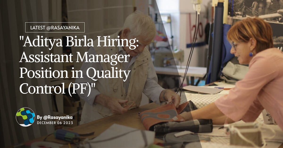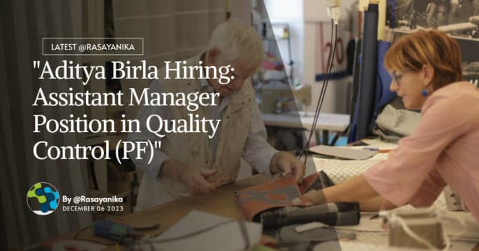 Aditya Birla Hiring – Cement organization in West Bengal, India is hiring for the position of Assistant Manager in Quality Control (PF).