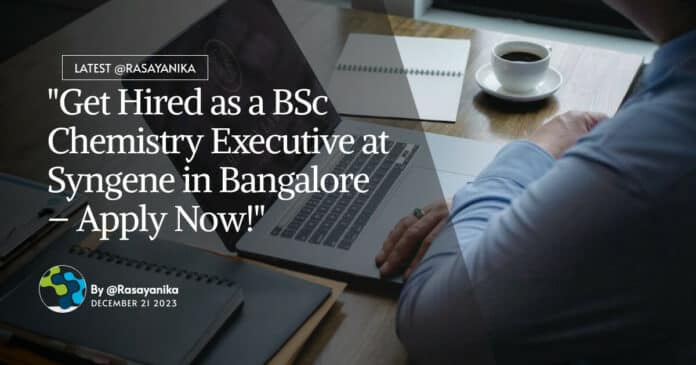 Syngene BSc Chemistry Executive Job Opening, Apply Online