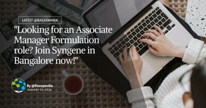 Keywords: Associate Manager, Formulation, Syngene, job posting, Bangalore, procurement, SAP, cGMP practices, vendor development, pharmaceutical industry. Subscribe to Rasayanika for the latest chemistry and Pharma job openings, follow us on Facebook and Telegram and subscribe to our youtube channel for the latest updates on chemistry and Pharma jobs and much more.