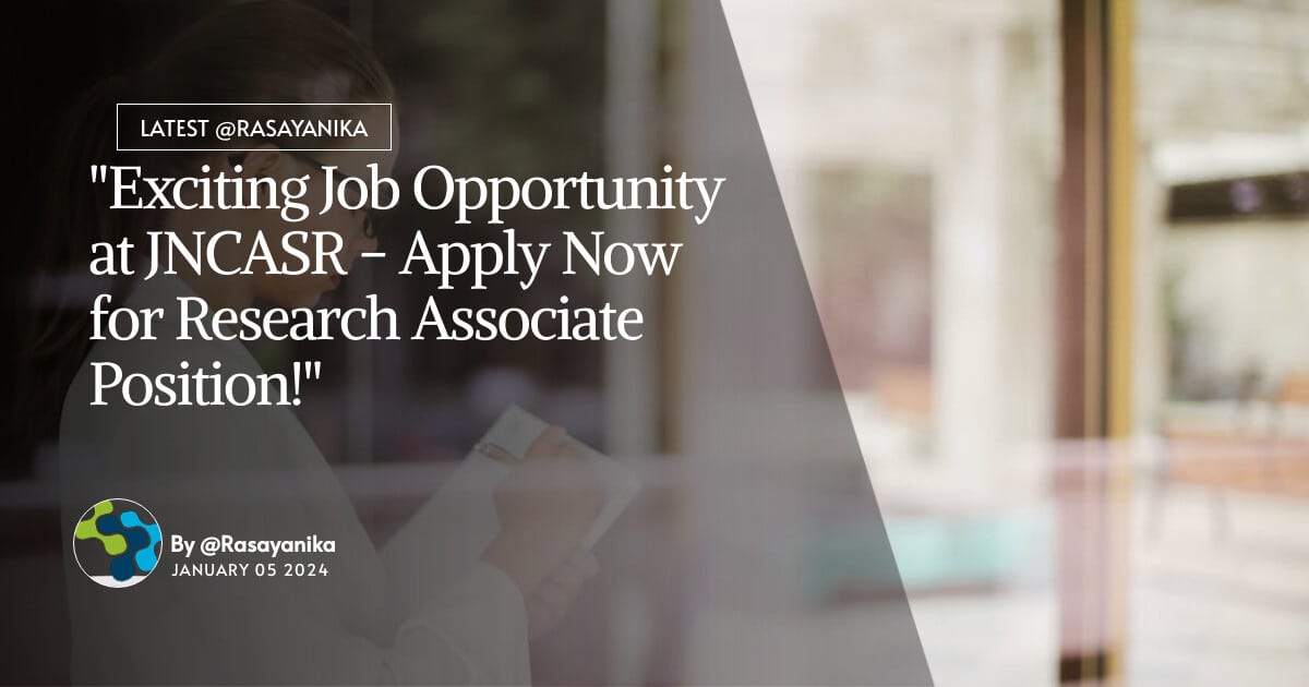 Keywords: JNCASR, MPharma, Research Associate, Job, Applications, Invited. JNCASR MPharma Research Associate Job – Applications