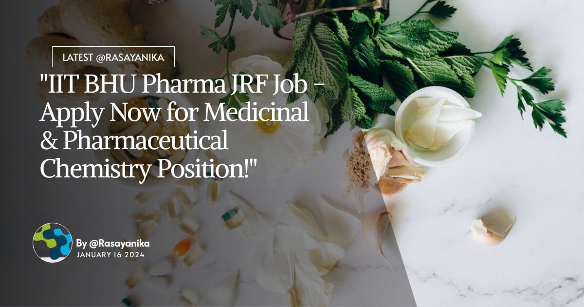 Keywords: IIT BHU, Pharma JRF Job, Medicinal & Pharmaceutical Chemistry, Apply, Indian Institute of Technology, Department of Pharmaceutical Engineering & Technology, Varanasi, Junior Research Fellow, SERB sponsored project, Alzheimer’s disease, Qualifications, Salary, Important Dates. IIT BHU Pharma JRF Job – Medicinal & Pharmaceutical Chemistry Apply. Subscribe to Rasayanika for the latest chemistry and Pharma job openings, follow us on Facebook and Telegram and subscribe to our youtube channel for the latest updates on chemistry and Pharma jobs and much more.