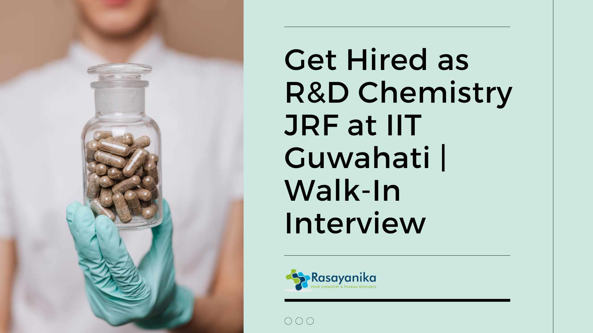 , contact Dr. Shyam P. Biswas over email: sbiswas@iitg.ac.in (preferred) and office number 0361-2583309.Keywords: Job posting, R&D Chemistry JRF (GATE), IIT Guwahati, Walk-In Interview, Chemistry, Superhydrophobic Metal-Organic Framework (MOF) Based Composites. R&D Chemistry JRF(GATE) Job at IIT Guwahati, Attend Walk-In. Subscribe to Rasayanika for the latest chemistry and Pharma job openings, follow us on Facebook and Telegram and subscribe to our youtube channel for the latest updates on chemistry and Pharma jobs and much more.