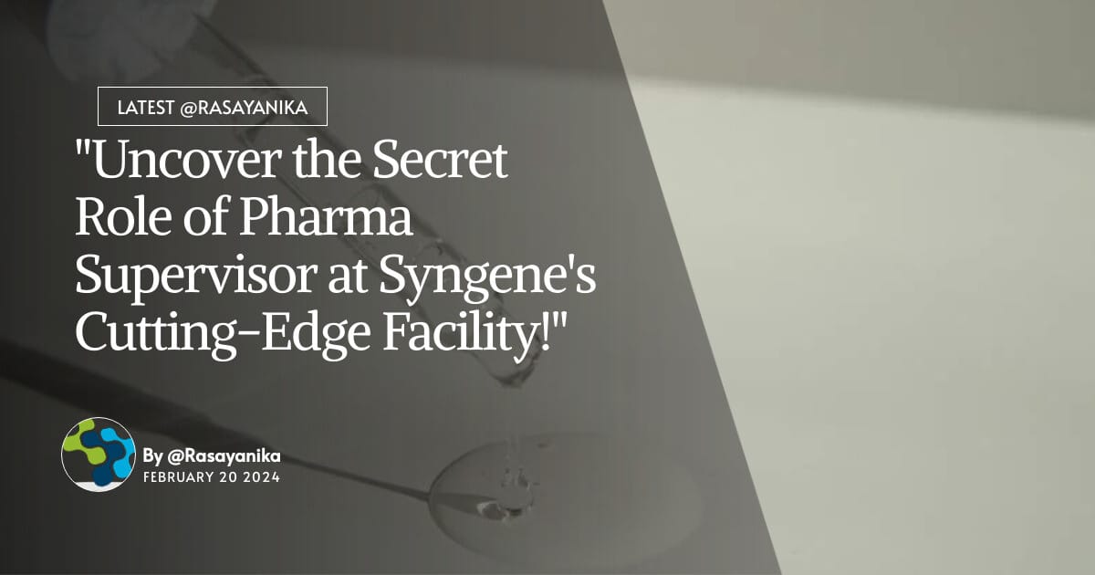 Pharma Supervisor Drug Product Facility at Syngene, Apply Online