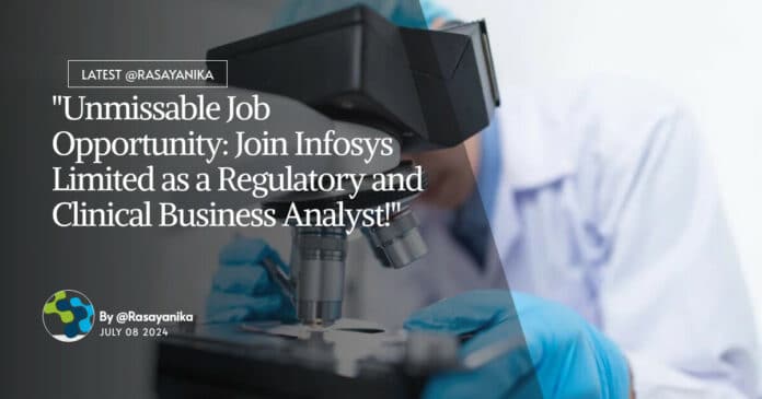 Keywords: Regulatory and Clinical Business Analyst, Infosys Limited, Bangalore, Life Sciences, Clinical Trials, Technology, Compliance, Safety. Infosys Hiring Pharma For Regulatory & Clinical Business Analyst Job, Apply Online. Subscribe to Rasayanika for the latest chemistry and Pharma job openings, follow us on Facebook and Telegram and subscribe to our youtube channel for the latest updates on chemistry and Pharma jobs and much more.
