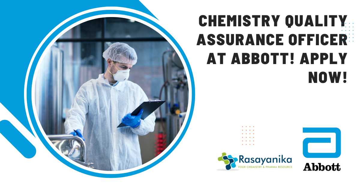 Keywords: Officer QA, Quality Assurance job, QA Officer, Abbott India, Jhagadia, Food industry, Chemistry, Quality control, EHS guidelines. Chemistry QA Officer at Abbott! Apply Now! Subscribe to Rasayanika for the latest chemistry and Pharma job openings, follow us on Facebook and Telegram and subscribe to our youtube channel for the latest updates on chemistry and Pharma jobs and much more.