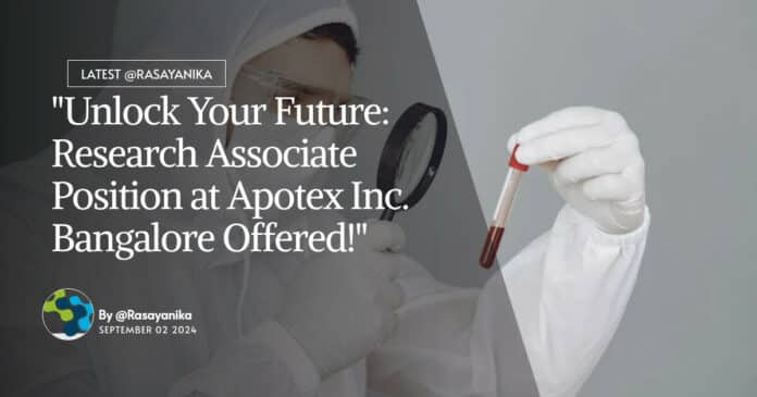 Keywords: Bio Analytical, Research Associate, Apotex, Bangalore, Job Posting. BPharma Research Associate Position at Apotex – Apply Online. Subscribe to Rasayanika for the latest chemistry and Pharma job openings, follow us on Facebook and Telegram and subscribe to our youtube channel for the latest updates on chemistry and Pharma jobs and much more.