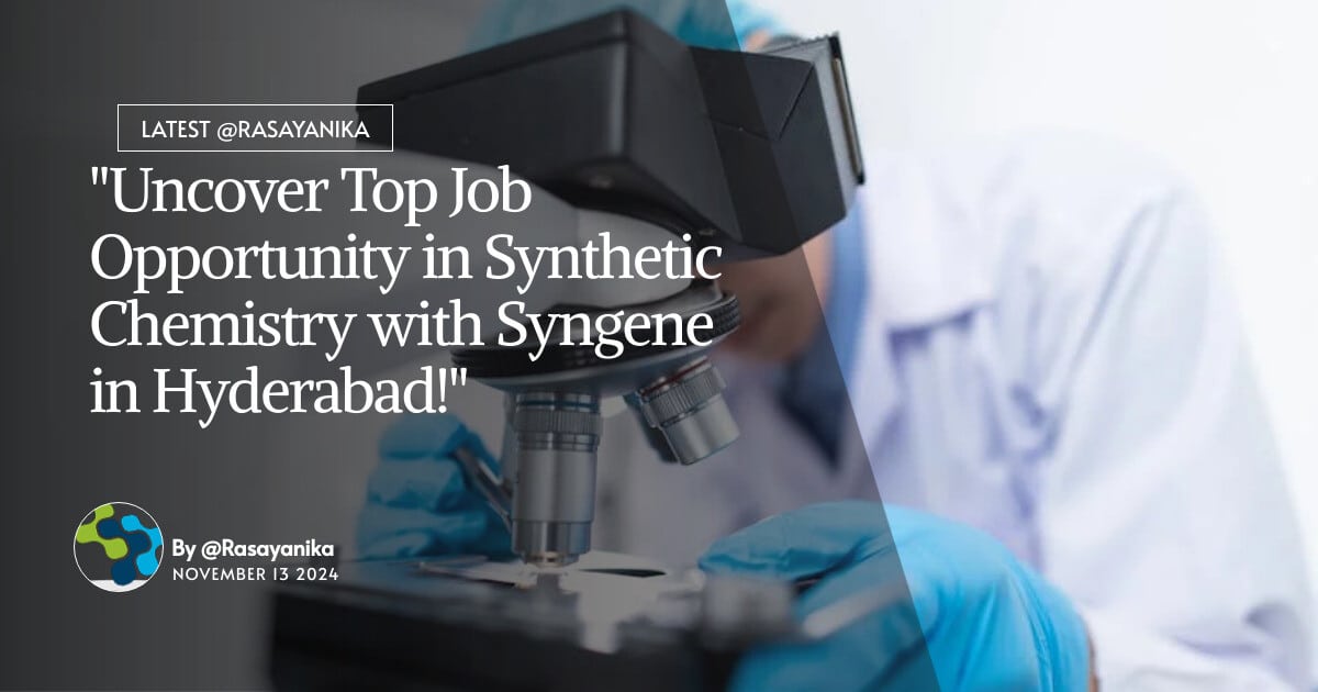 Keywords: Synthetic Chemistry Scientist, Job Posting, Syngene, Hyderabad. Synthetic Chemistry Scientist at Syngene – Apply Online. Subscribe to Rasayanika for the latest chemistry and Pharma job openings, follow us on Facebook and Telegram and subscribe to our youtube channel for the latest updates on chemistry and Pharma jobs and much more.