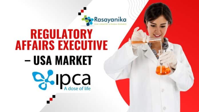 Keywords: Regulatory Affairs Executive, Ipca Laboratories Limited, Pharmaceutical company, USA market, Regulatory guidelines, ANDA, Healthcare Solutions. Regulatory Affairs Executive at Ipca Laboratories, Pharma Apply