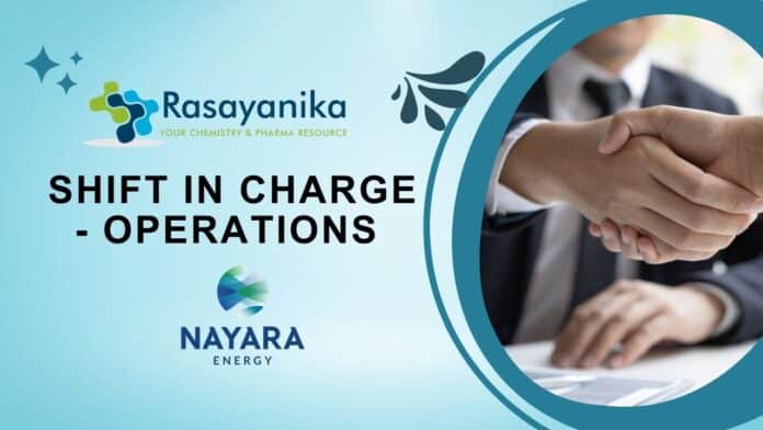 Keywords: Nayara Energy, Shift In Charge, Operations, Utilities, Quality Management, Team Management, Energy Management, Refinery, HSEF procedures, HSEF Procedures, Refinery Careers, Chemical Engineering Jobs, Operations Manager, Industrial Safety, Plant Operations, Oil & Gas Jobs, Energy Sector Careers, Job postings, Chemistry jobs, Nayara Energy Careers Chemistry Jobs, Apply now!