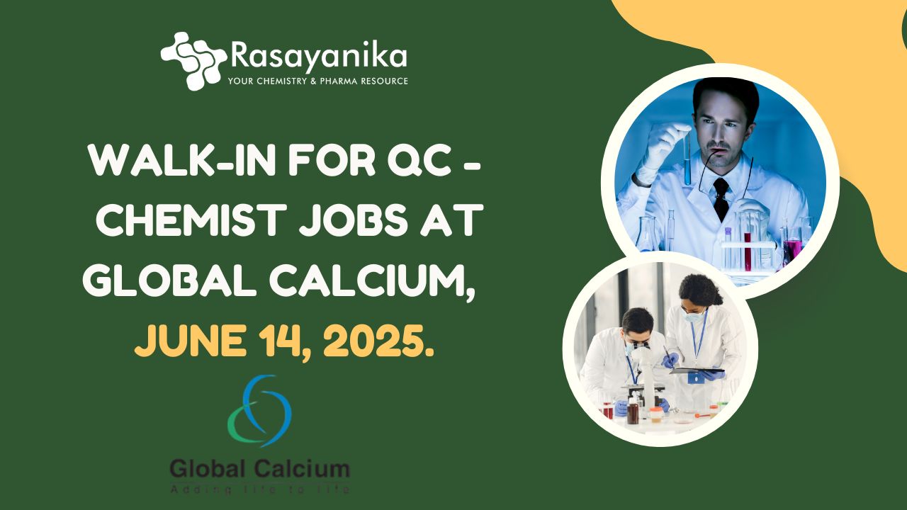 Walk-In for QC – Chemist Jobs at Global Calcium, June 14, 2025.
