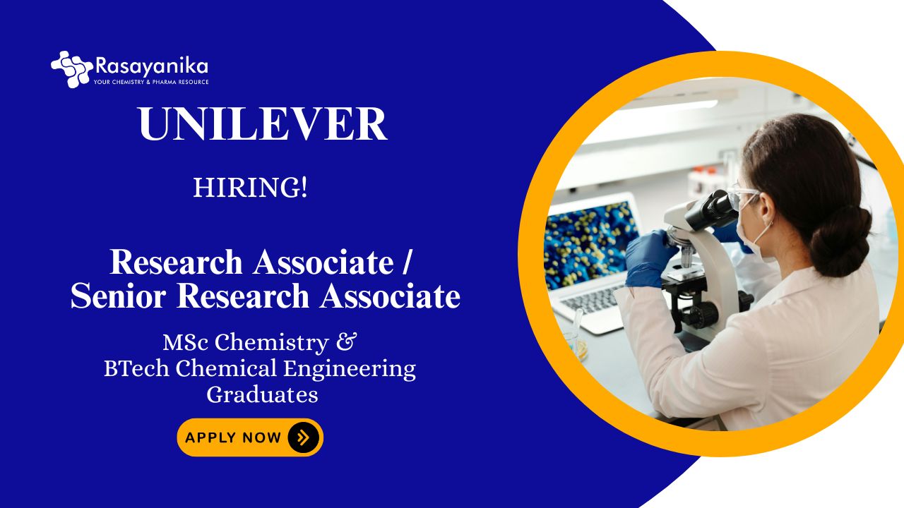Keywords: Research Associate Unilever Bengaluru, Senior Research Associate jobs Karnataka, R&D jobs Unilever, Chemistry jobs Unilever, surfactant formulation jobs, Unilever Bangalore careers, Job Postings.MSc Chemistry Jobs Unilever – Chemical Engg Eligible