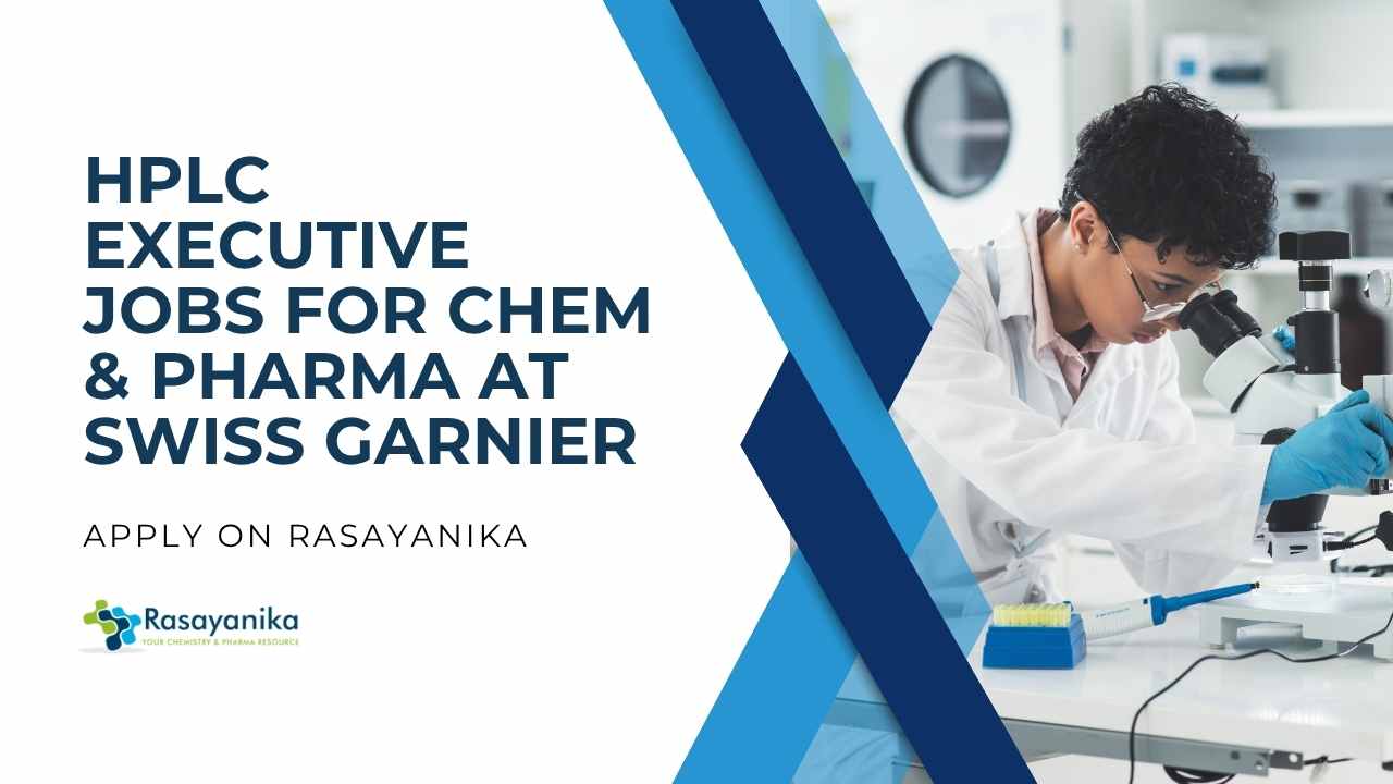 Keywords: Subscribe to Rasayanika for the latest chemistry and Pharma job openings, follow us on Facebook and Telegram and subscribe to our youtube channel for the latest updates on chemistry and Pharma jobs and much more. HPLC Executive Jobs For Chem & Pharma at Swiss Garnier, Apply on Rasayanika.