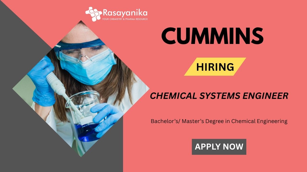 Chemical Engineering Career: Cummins is Hiring a Chemical Systems Engineer in Pune, India - Bachelor’s/ Master’s Graduates Can Apply Now