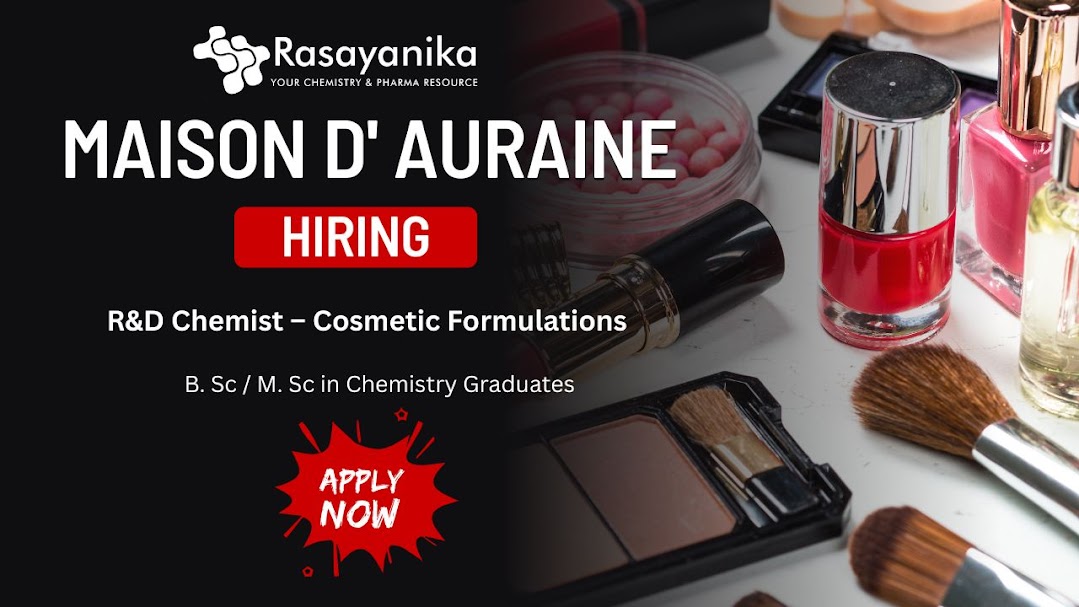 Join Maison D’ Auraine as an R&D Chemist and drive innovation in skincare, haircare, and personal care formulations. This Cosmetic Chemist Job role offers hands-on experience in product development, stability testing, and cost optimization, while collaborating with cross-functional teams in a fast-growing beauty and personal care organization in Gurgaon, India. Graduates searching for Chemistry Jobs can apply.