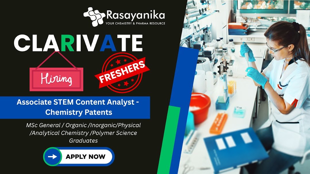 Join Clarivate as an Associate STEM Content Analyst in Chennai and gain hands-on experience in patent abstraction for chemistry. This role is ideal for MSc Chemistry graduates looking to build expertise in intellectual property, content curation, and editorial analysis using advanced Clarivate tools. MSc Chemistry graduates seeking for freshers job can apply.