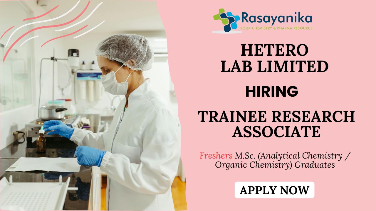 Are you looking for Research Associate Jobs or Fresher Jobs in the pharmaceutical industry? Join as a Trainee Research Associate at Hetero in Jeedimetla, Hyderabad, Telangana. This opportunity, part of Hetero Careers, provides hands-on experience in analytical testing, method development, stability studies, and documentation in compliance with cGMP standards. It is an ideal start for freshers seeking to launch their career in pharmaceutical research and development.