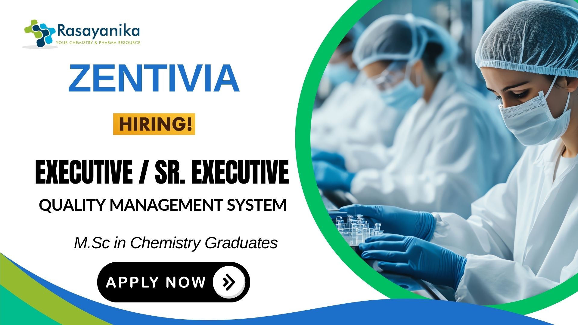 Executive Position in Quality Management System | Chemistry Job at Zentivia