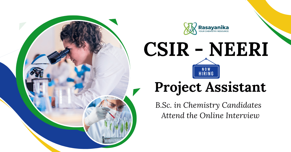 The CSIRāNational Environmental Engineering Research Institute (CSIR-NEERI), Nagpur, is inviting online applications for the position of Project Assistant-II (PA-II) under the project āCapacity Building on Sophisticated Instrumentation Facilities and Testing Services for External Users (TSP-2995)ā. The position is purely temporary and based in the SEAF Division at NEERI, Nagpur. Eligible candidates with a B.Sc. in Chemistry can apply online by November 13, 2025, to participate in the online interview process conducted via MS Teams or Skype. Apply now for the Project Assistant Jobs at NEERI | BSc Chemistry Jobs.