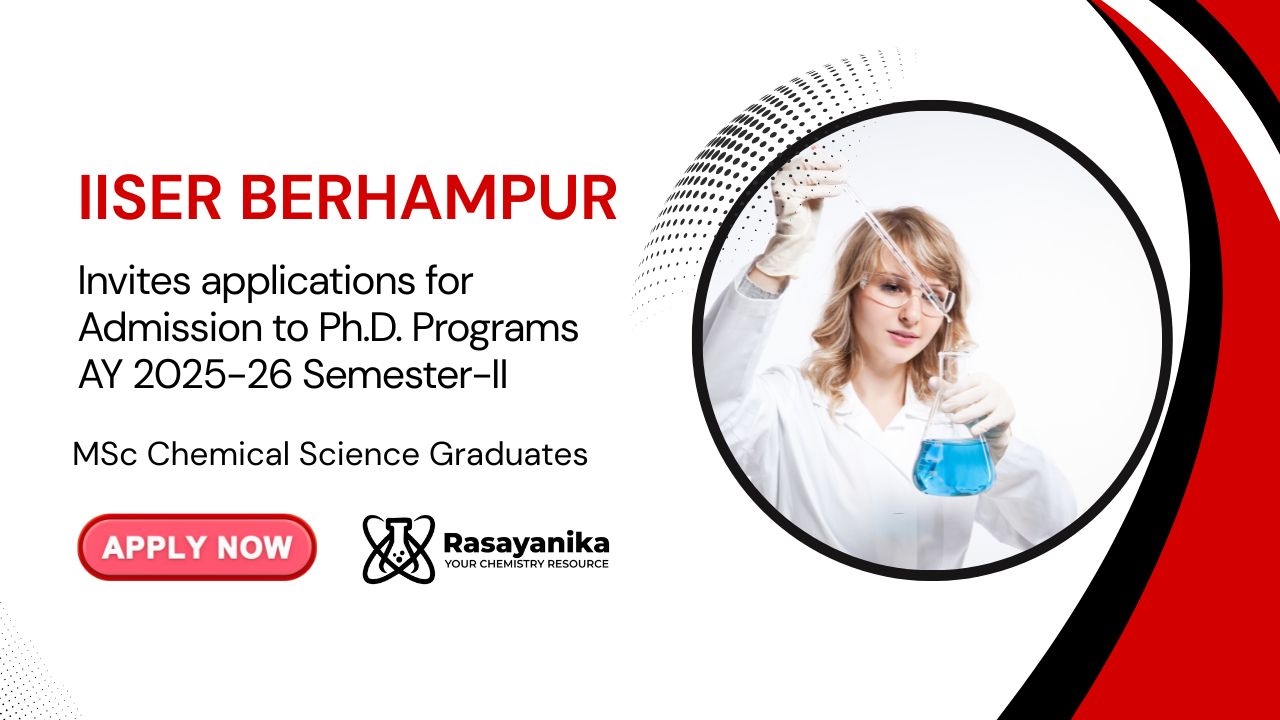The Indian Institute of Science Education and Research Berhampur invites applications from highly motivated students for admission to the Ph.D. programme starting from January 2026. Currently, IISER Berhampur offers Ph.D. programmes in Biological Sciences, Chemical Sciences, Earth & Environmental Sciences, Mathematical Sciences, Physical Sciences
