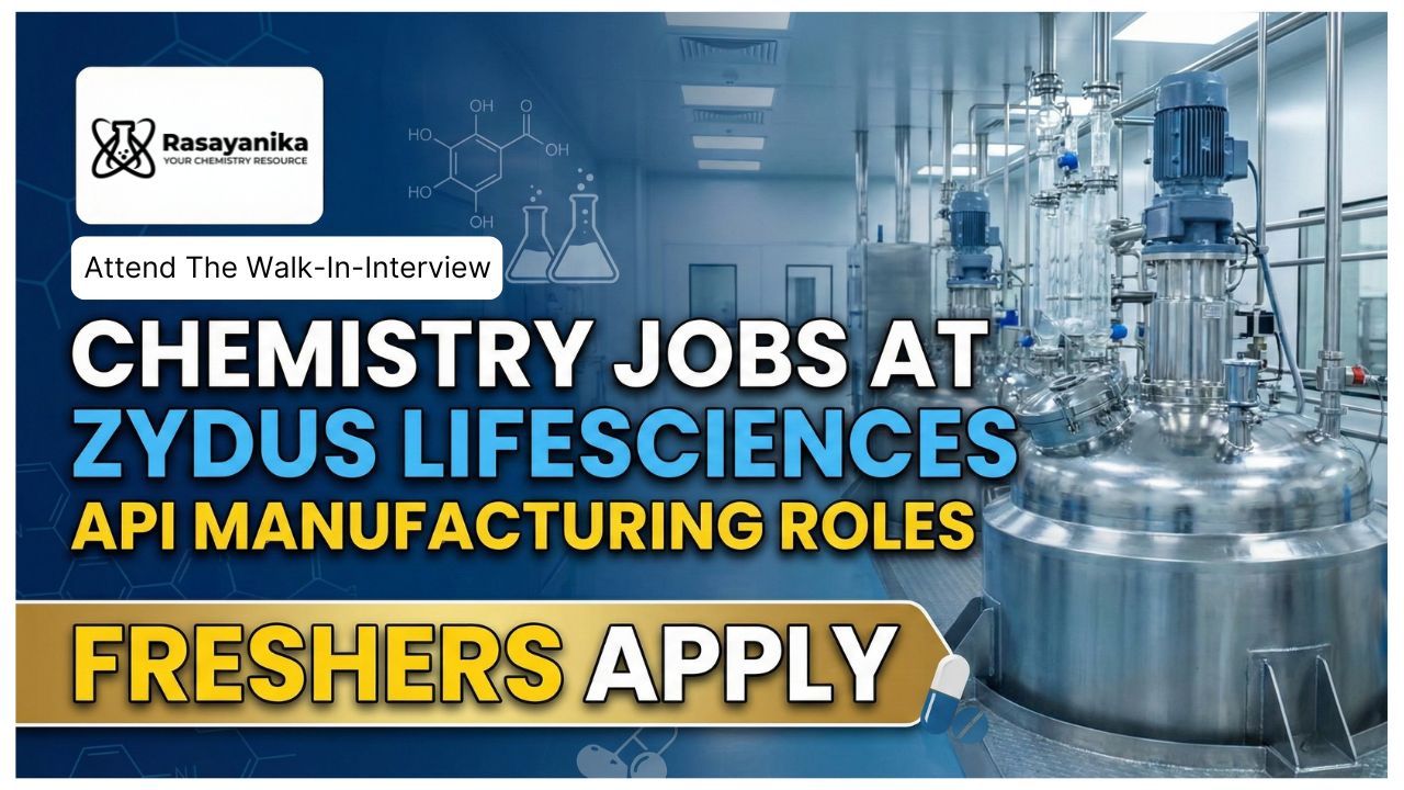 Chemistry Jobs at Zydus Lifesciences | API Manufacturing Roles | Freshers Apply