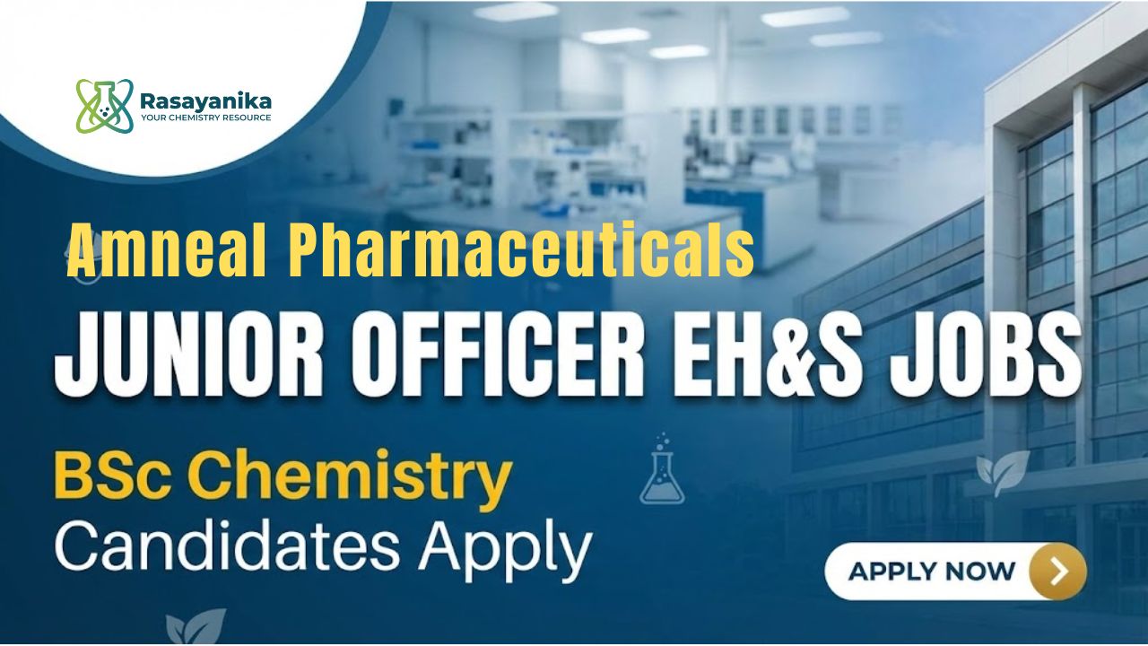 Chemistry Jobs at Amneal Pharmaceuticals. A Junior Officer – Environmental, Health & Safety (EH&S) position is available at Dahej SIR, Gujarat, offering hands-on experience in effluent treatment, waste management, and compliance operations in an industrial environment. This full-time role is ideal for candidates with chemistry or environmental science backgrounds who are seeking growth in EHS operations within chemical or pharmaceutical manufacturing settings. Apply now for the exciting opportunity at Amneal Pharma.