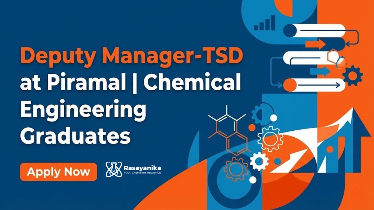 Are you looking for Deputy Manager jobs in Telangana within technology transfer and process development? Piramal Pharma Solutions is hiring a Deputy Manager – TSD in Medak, offering a strong opportunity for professionals from Chemical Engineering jobs and process development roles to work on scale-up, validation, and technology transfer in a global CDMO environment.