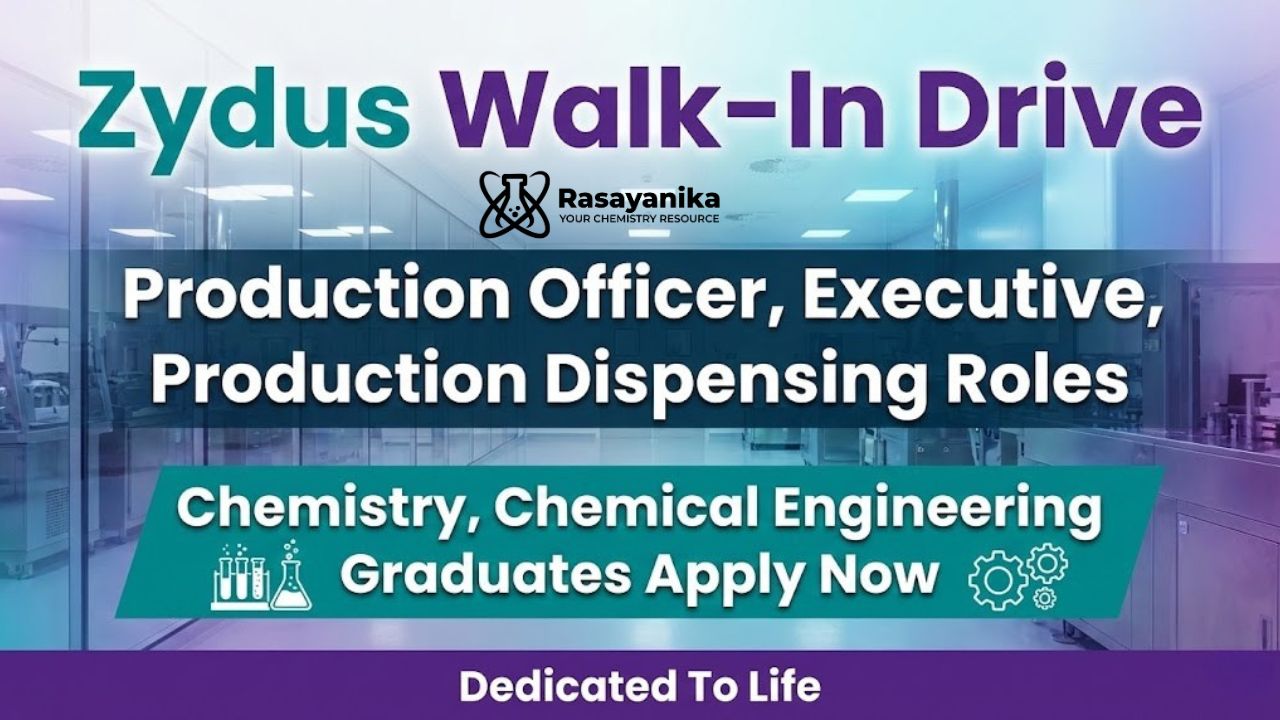 Are you looking for API production jobs in Ankleshwar with a leading pharmaceutical company? Zydus Lifesciences Limited is conducting a walk-in interview for multiple production roles at its API Unit-1. This opportunity is ideal for candidates seeking BSc Chemistry jobs, MSc Chemistry jobs, Chemical Engineering jobs, and pharmaceutical manufacturing careers in a reputed organization.