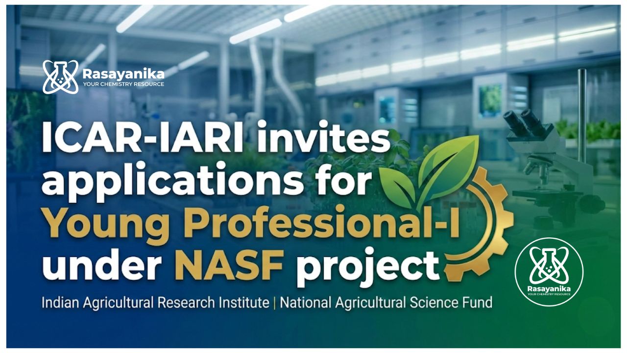 Young Professional Jobs | The ICAR–Indian Agricultural Research Institute (IARI), New Delhi, has announced a recruitment notification for Young Professional-I (YP-I) under a NASF-funded research project in the Division of Agricultural Chemicals. This contractual position is ideal for graduates and postgraduates in Agriculture, Chemistry, and allied sciences interested in applied research focused on sustainable agriculture and climate-smart farming systems. Interested candidates apply for the exciting opportunity at ICAR IARI.