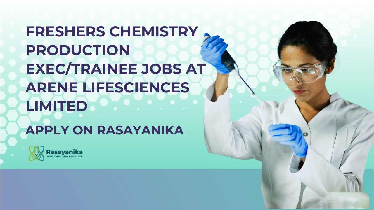 Freshers BSc Chemistry Trainee Jobs at Arene Lifesciences Limited, Apply on Rasayanika is a great opportunity for fresh graduates looking to begin their careers in API manufacturing and pharmaceutical production. These trainee roles are suitable for BSc Chemistry freshers seeking hands-on experience in GMP-compliant production environments, exposure to real-time manufacturing processes, and long-term growth opportunities in the pharmaceutical industry in India.